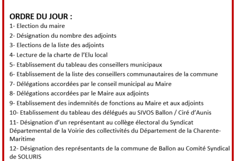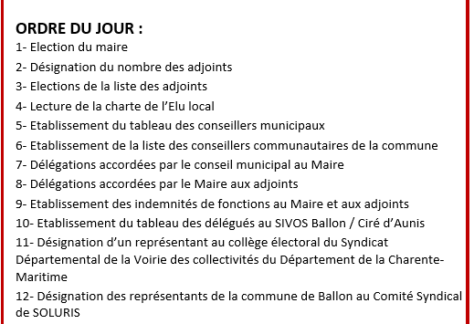 651 inscrits sur les listes d’électeurs 305 votants (émargements) 243 votes pour l’unique liste « Ballon, un nouveau souffle » 34 votes blancs 28 votes nuls