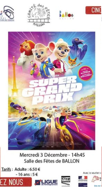 La première pour les petits mais également les grands enfants mercredi 3 décembre à 14h45 avec le dessin animé : « Super grand prix ».