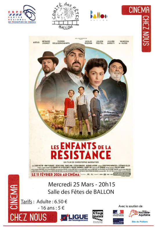 Le comité des fêtes vous propose une séance de cinéma à la Salle des Fêtes de Ballon !
