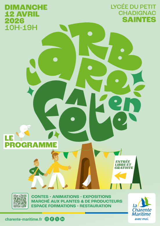 Le 12 avril, la journée « L’arbre en Fête » à Saintes ouvrira ces 2 semaines. Au programme : des animations natures, des conférences, des contes, des ateliers scientifiques, des initiations à la photographie végétale ou a l’aquarelle … une belle journée pour célébrer la nature en famille.